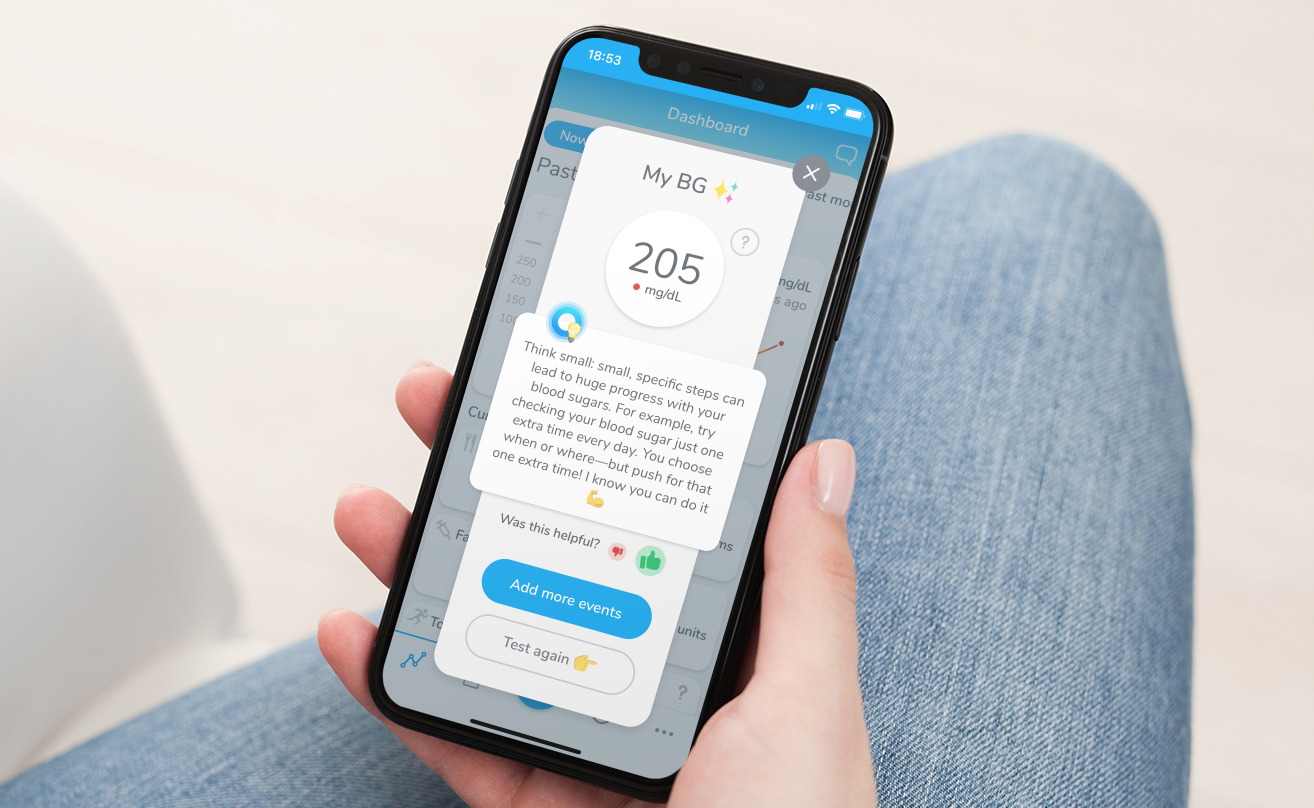 3. All done! As you test, your AI diabetes coach Aria will learn about your unique diabetes and offer tips.